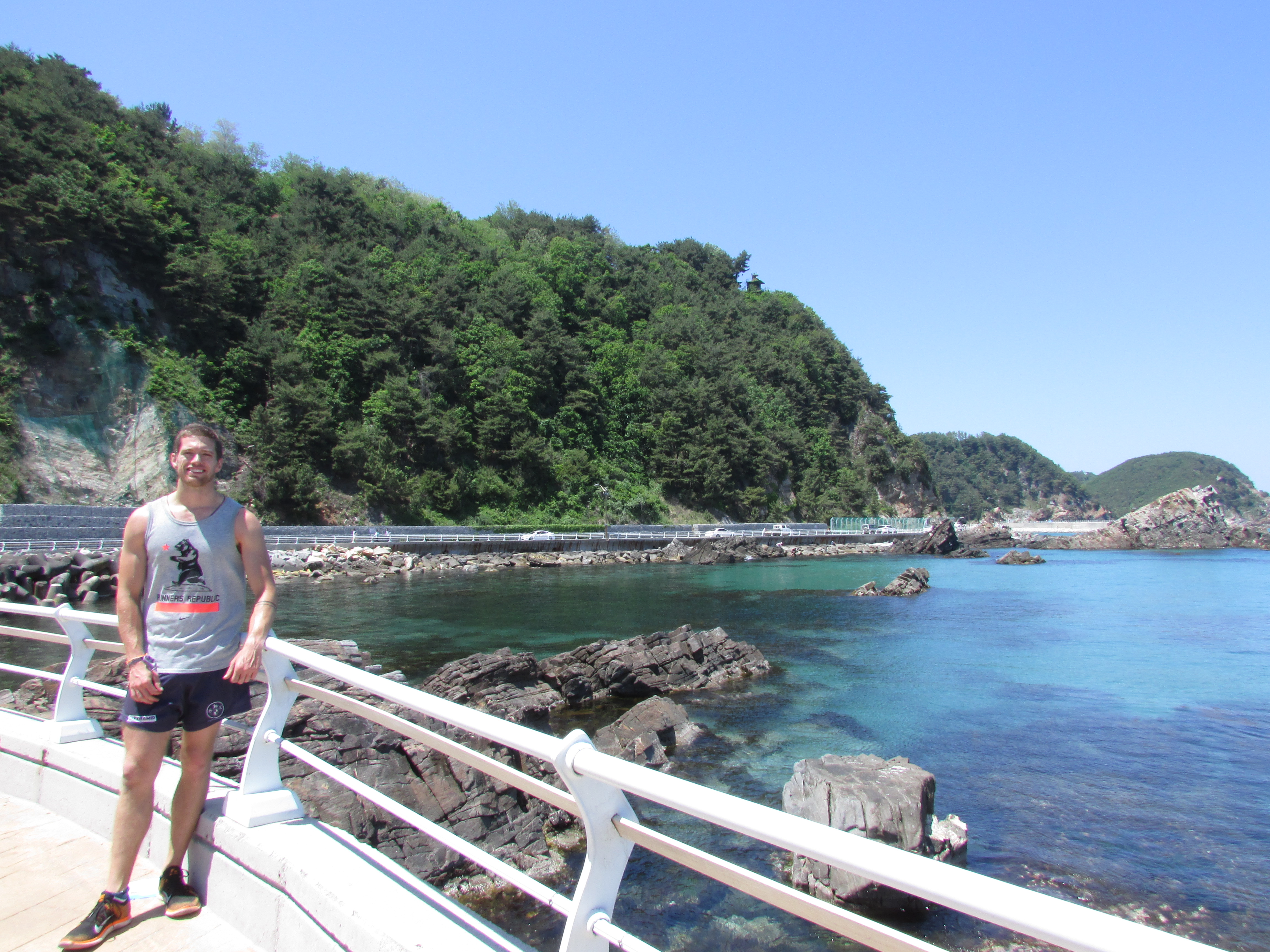 After a tasty Korean lunch, in the company of the restaurants three legged dog, we set out for the next 60 km of our journey. On route we past stunning lakes, beautiful Korean temples and rolling mountains set against the backdrop of the The Sea of Japan (The East Sea to any Korean…apologies for the offence #Dokdolove). The going was tough in places, with a few long hill stretches to get through, but in the end, all the team made it for a nights rest in Gangneung and to sample to new Mexican restaurant in town (no better way to finish a day).